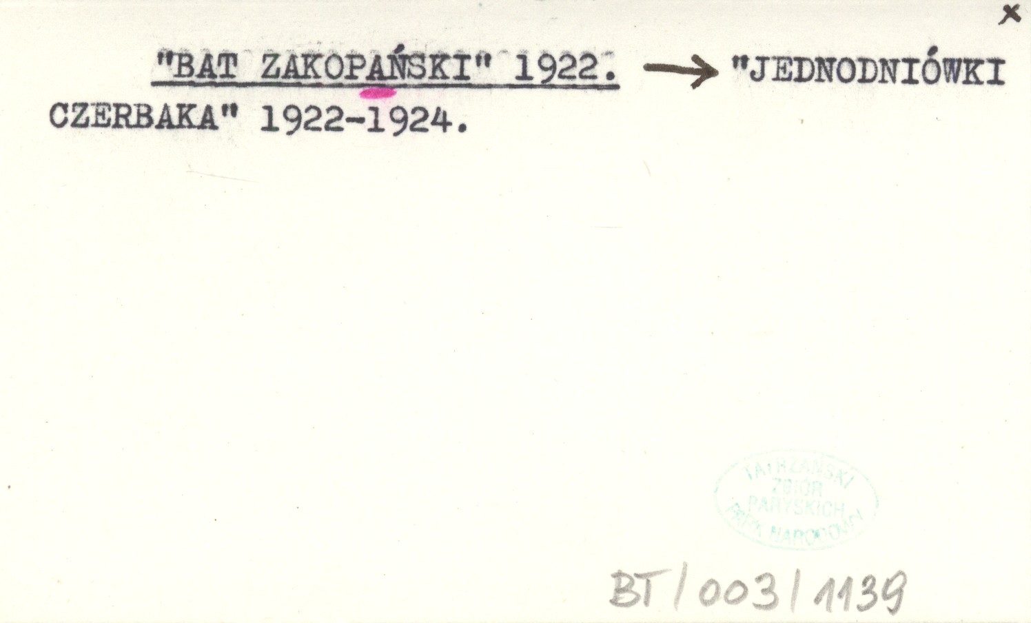 "JEDNODNIÓWKI CZERBAKA" 1922-1924