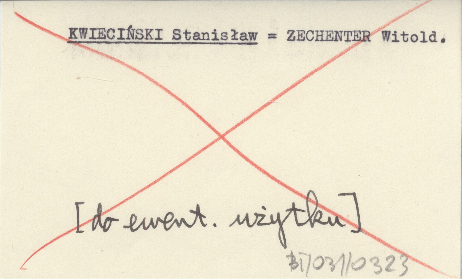ZECHENTER Witold KWIECIŃSKI Stanisław [do ewent. użytku]