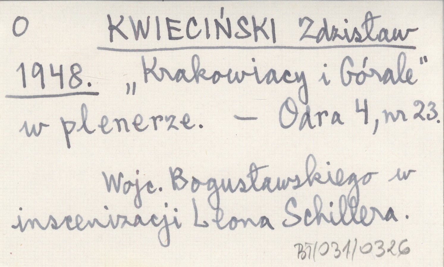 Odra, 4, nr 23. Wojciecha Bogusławskiego w inscenizacji Leona Schillera.