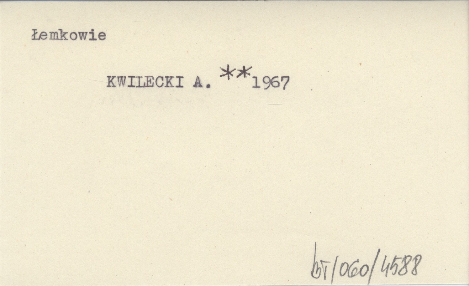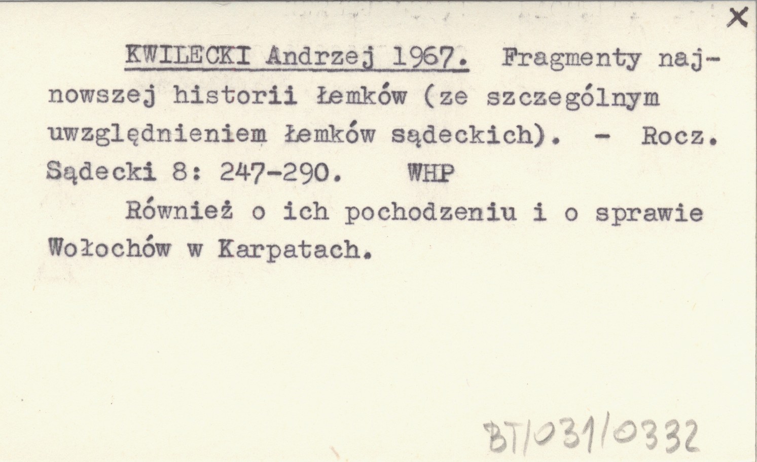 KWILECKI Andrzej 1967 Fragmenty najnowszej historii Łemków (ze szczególnym uwzględnieniem Łemków sądeckich).