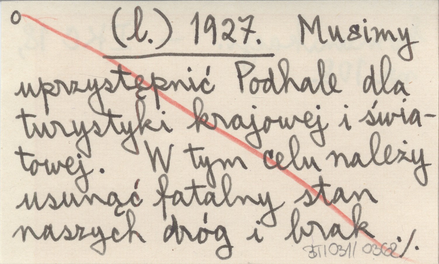 (l.) 1927 Musimy uprzystępnić Podhale dla turystyki krajowej i światowej. W tym celu należy usunąć fatalny stan naszych dróg i brak komunikacji.