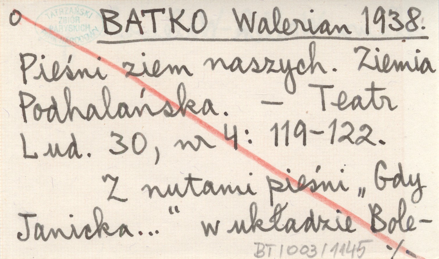 BATKO Walerian 1938 Pieśni ziem naszych. Ziemia Podhalańska.
