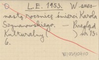 L. E. 1953 W szesnastą rocznicę śmierci Karola Szymanowskiego.