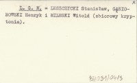 L. G. M. LESZCZYCKI Stanisław GĄSIOROWSKI, Henryk. ; MILESKI, Witold. ; Zbiorowy kryptonim.