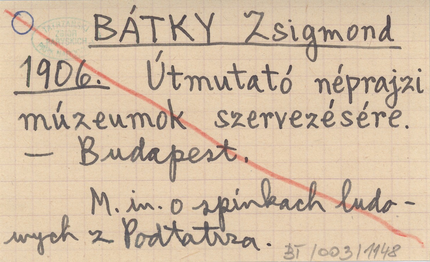 BÁTKY Zsigmond 1906 Útmutató néprajzi múzeumok szervezésére.