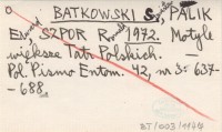 BATKOWSKI Stanisław PALIK, Edward. ; SZPOR, Romuald. ; 1972 Motyle większe Tatr Polskich.