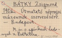 BÁTKY Zsigmond 1906 Útmutató néprajzi múzeumok szervezésére.