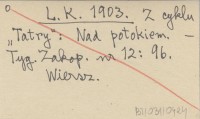 Projekt Digitalizacja fiszek z Bibliografi± Tatr i Podtatrza Witolda Henryka Paryskiego jest finansowany ze ¶rodków Ministra Kultury i Dziedzictwa Narodowego oraz Tatrzańskiego Parku Narodowego.