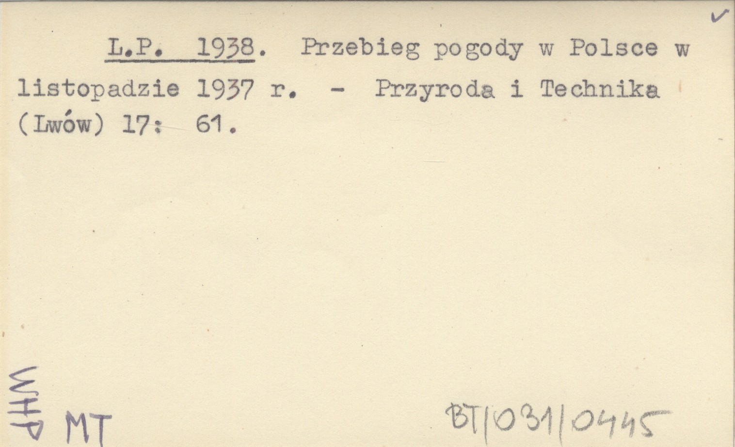 L. P. 1938 Przebieg pogody w Polsce w listopadzie 1937 r.