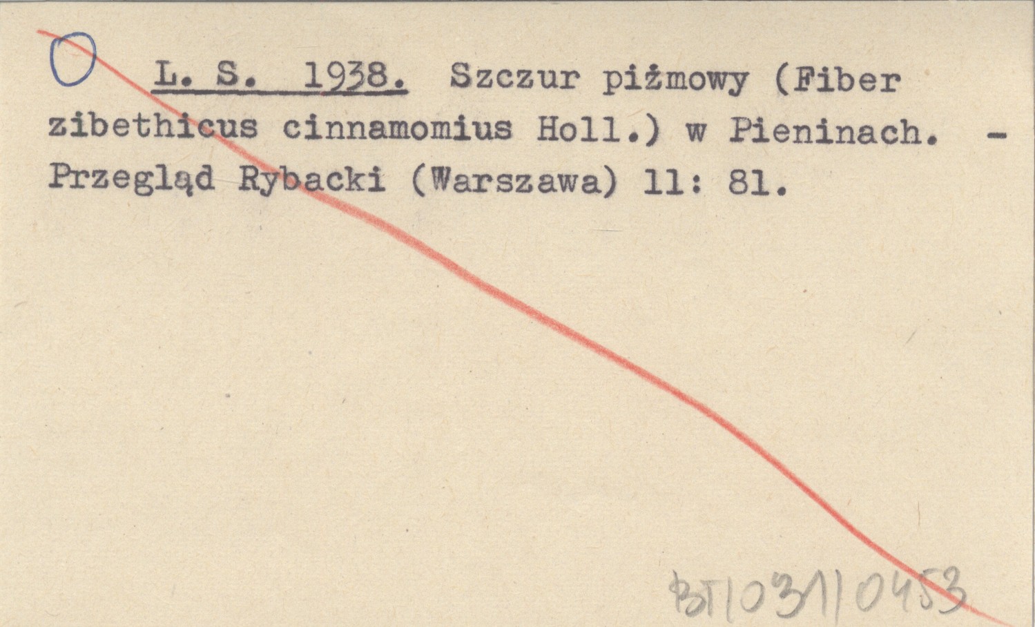 L. S. 1938 Szczur piżmowy (Fiber zibethicus cinnamomius Holl.) w Pieninach.
