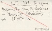 L. T. 1929 Po zgonie taternika dra M. ¦wierza.