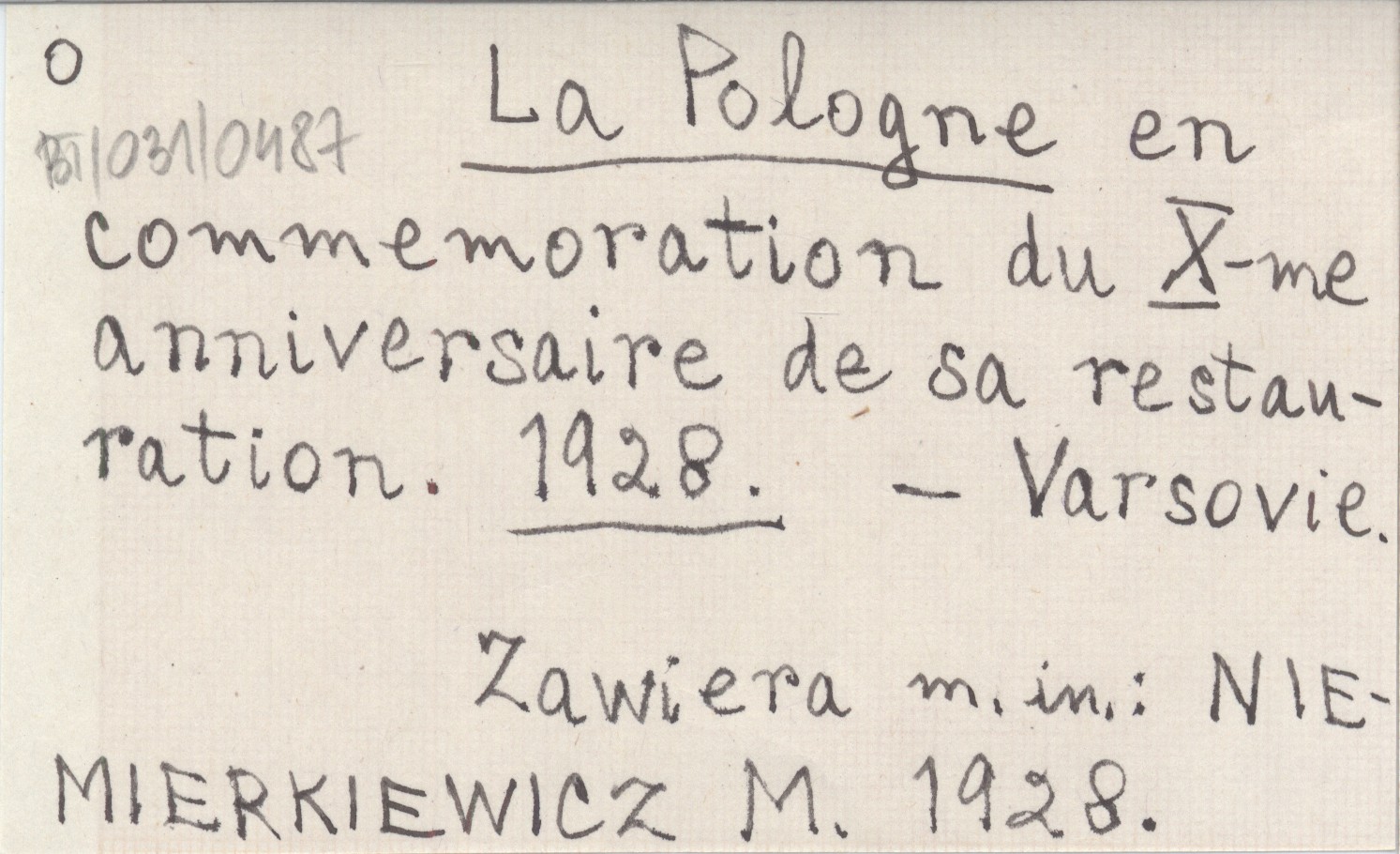 Varsovie , Zawiera m. in.: NIEMIERKIEWICZ M. 1928