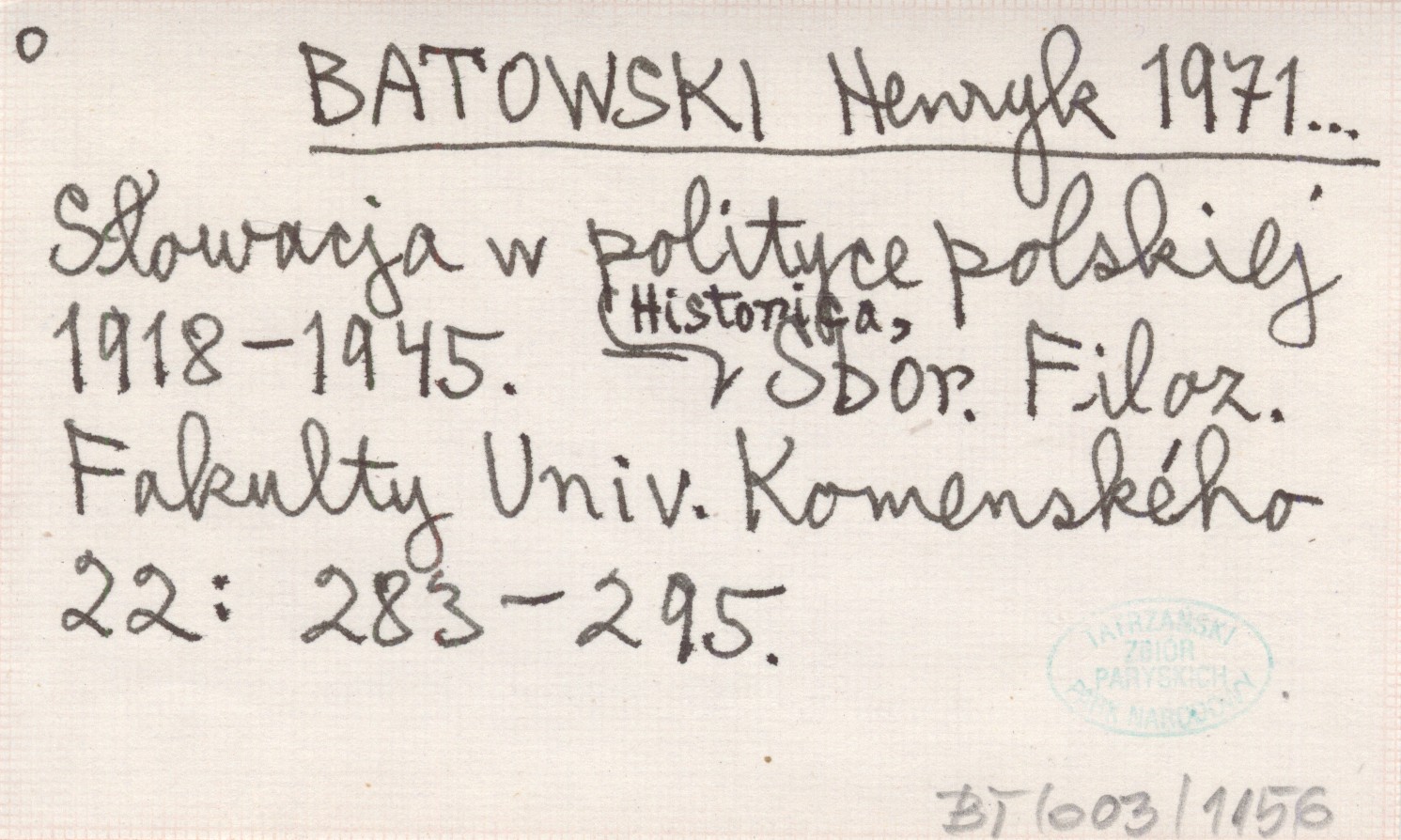 BATOWSKI Henryk 1971... Słowacja w polityce polskiej 1918-1945.