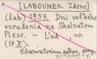 (lab) [LABOUNEK Zdeno] 1957 Dni veľkého vzrušenia na Skalnatom Plese.
