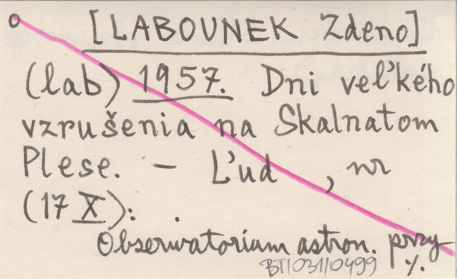 Ľud, 17 X. Obserwatorium astronomiczne przy Łomnickim Stawie (obserwacje satelity).