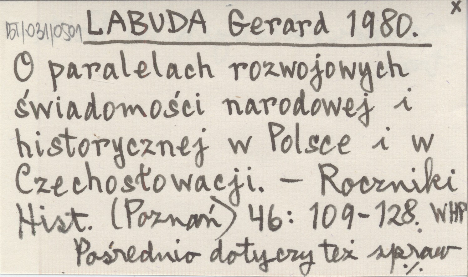 LABUDA Gerard 1980 O paralelach rozwojowych świadomości narodowej i historycznej w Polsce i w Czechosłowacji.