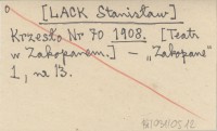 Krzesło Nr 70 [LACK Stanisław] 1908 [Teatr w Zakopanem.]