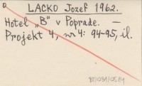 LACKO Jozef 1962 Hotel "B" v Poprade.