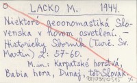 LACKO M. 1944 Niektoré geoonomastiká Slovenska v novom osvetlení.