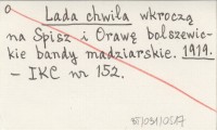 Lada chwila wkroczą na Spisz i Orawę bolszewickie bandy madziarskie. 1919