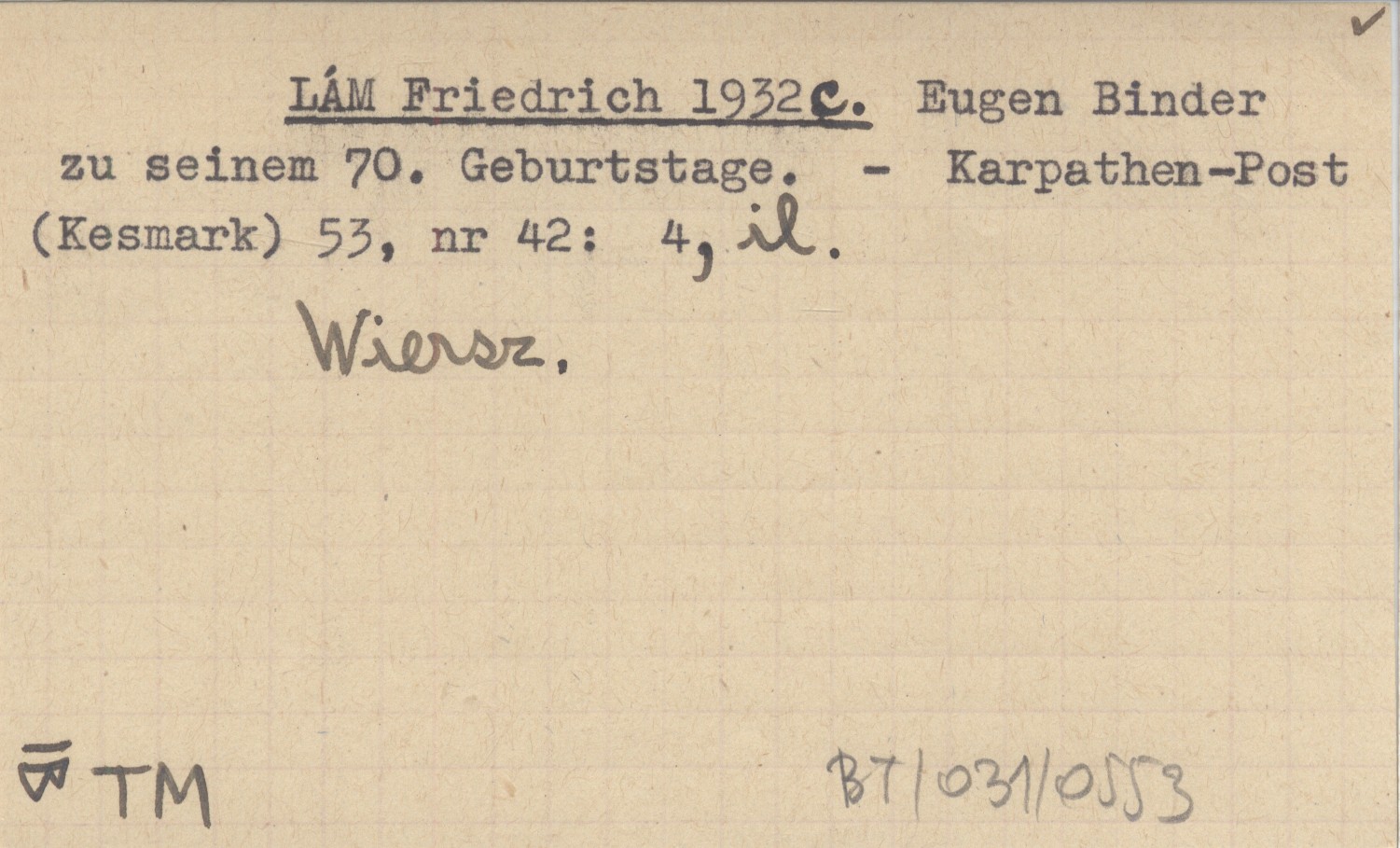 LÁM Friedrich 1932 c Eugen Binder zu seinem 70. Geburtstage.