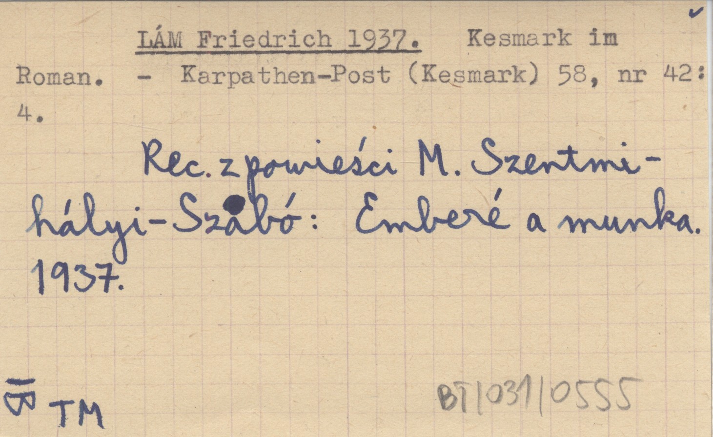 Karpathen-Post (Kesmark) , 58, nr 42: 4. Recenzja z powieści M. Szentmihályi-Szabó: Emberé a munka. 1937.