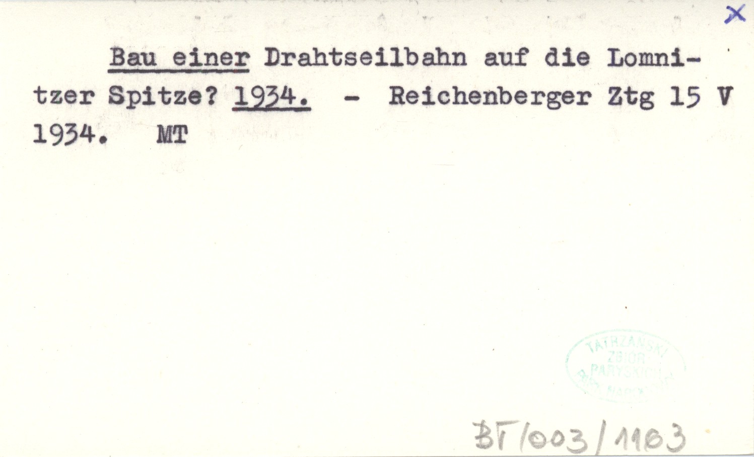 Bau einer Drahtseilbahn auf die Lomnitzer Spitze? 1934