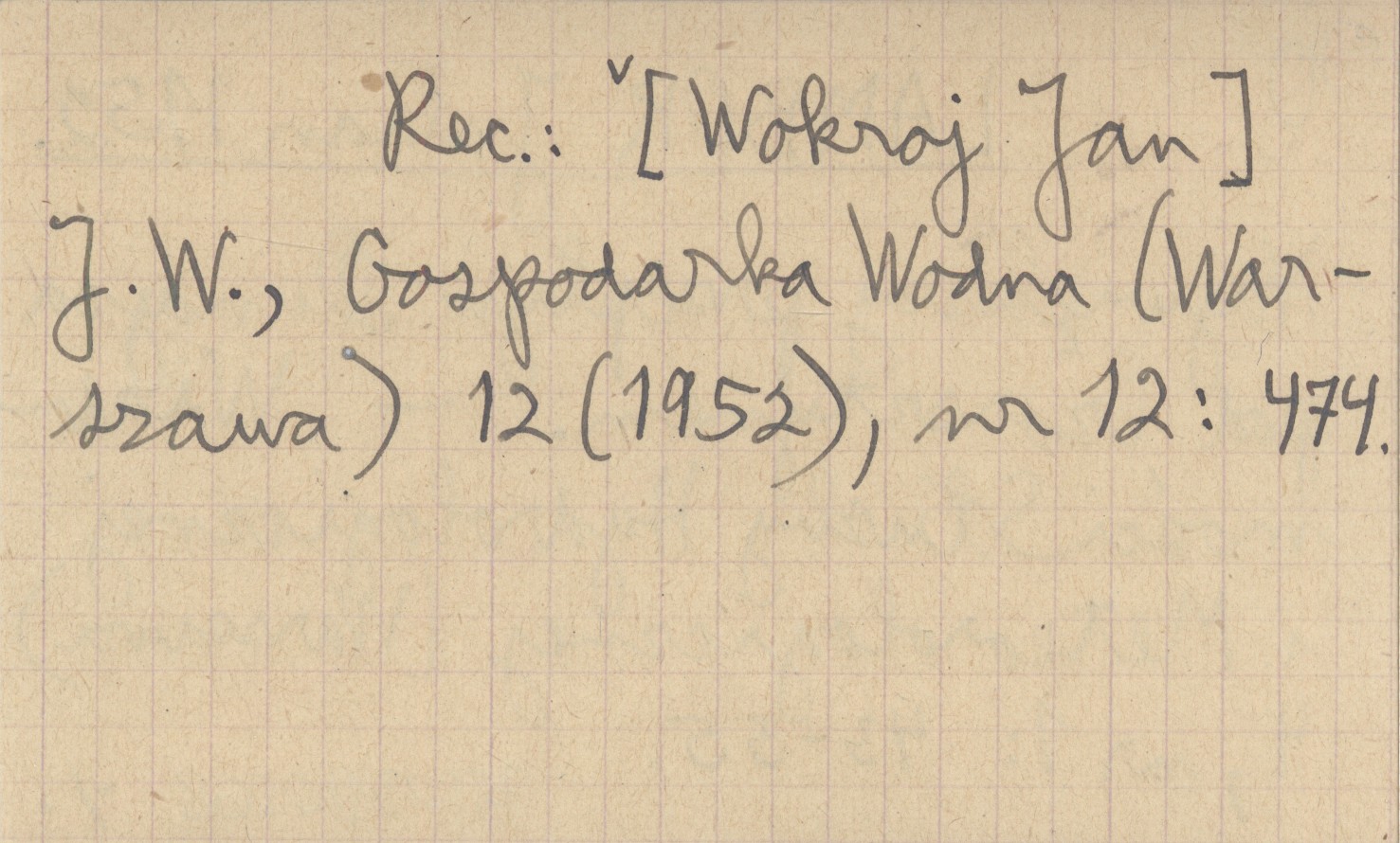 Wiadomości Służby Hydrologicznej i Meteorologicznej (Warszawa) , 4, nr 1: 43-55. REC: [WOKROJ Jan] J. W., Gospodarka Wodna (Warszawa) 12 (1952), nr 12: 474.