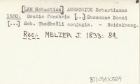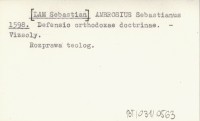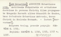 AMBROSIUS Sebastianus [LAM Sebastian 1591 Antithesis Ubiquitatis et orthodoxae doctrinae de persona Christi ; illam propugnante Gregorio Horvath aliter Stansith de Gradez, hanc defendente Sebastiano Ambrosio, Servo Christi in Ecclesia Kesmark.