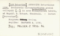 AMBROSIUS Sebastianus [LAM Sebastian] 1596 Declaratio circumstantiarum gemini colloquii [...] in arce Kesmarkiensi habiti, ad Magnif. D. Sebast. Theokeoli.