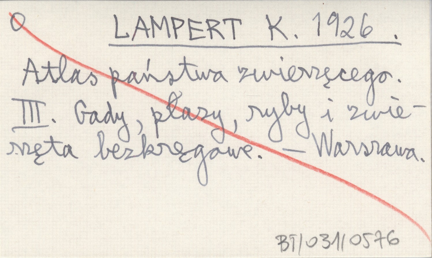 LAMPERT K. 1926 Atlas państwa zwierzęcego. III. Gady, płazy, ryby i zwierzęta bezkręgowe.
