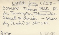 LANDE Jerzy CZEŻOWSKI, Tadeusz. ; 1925 Polskie Towarzystwo Tatrzańskie. Oddział Wileński.