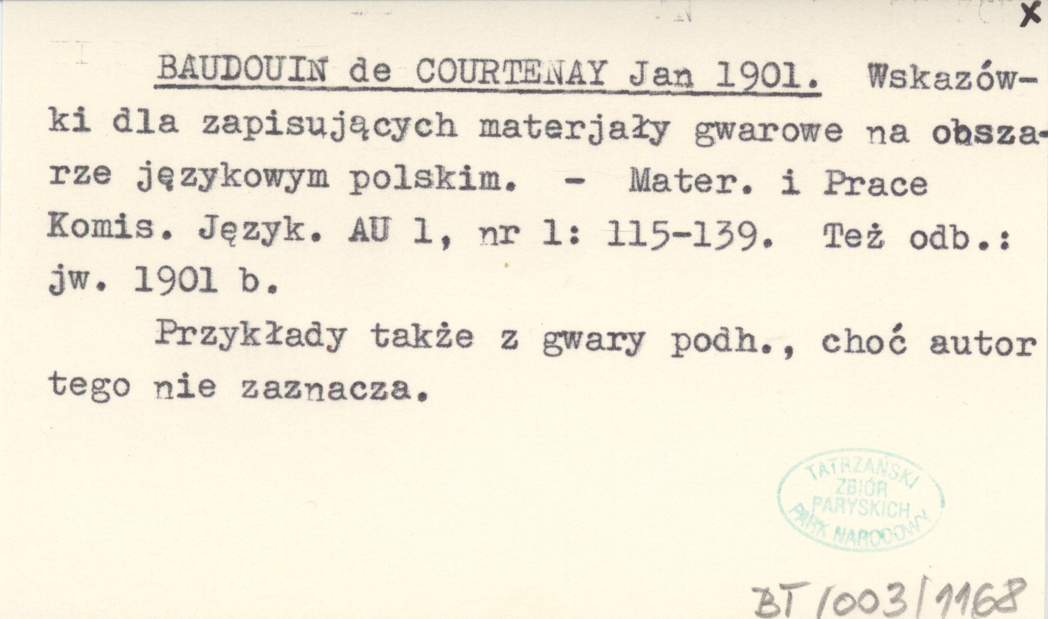 BAUDOUIN de COURTENAY Jan 1901 Wskazówki dla zapisujących materjały gwarowe na obszarze językowym polskim.