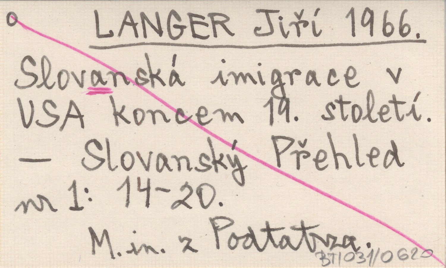 LANGER Jiří 1966 Slovanská imigrace v USA koncem 19. století.