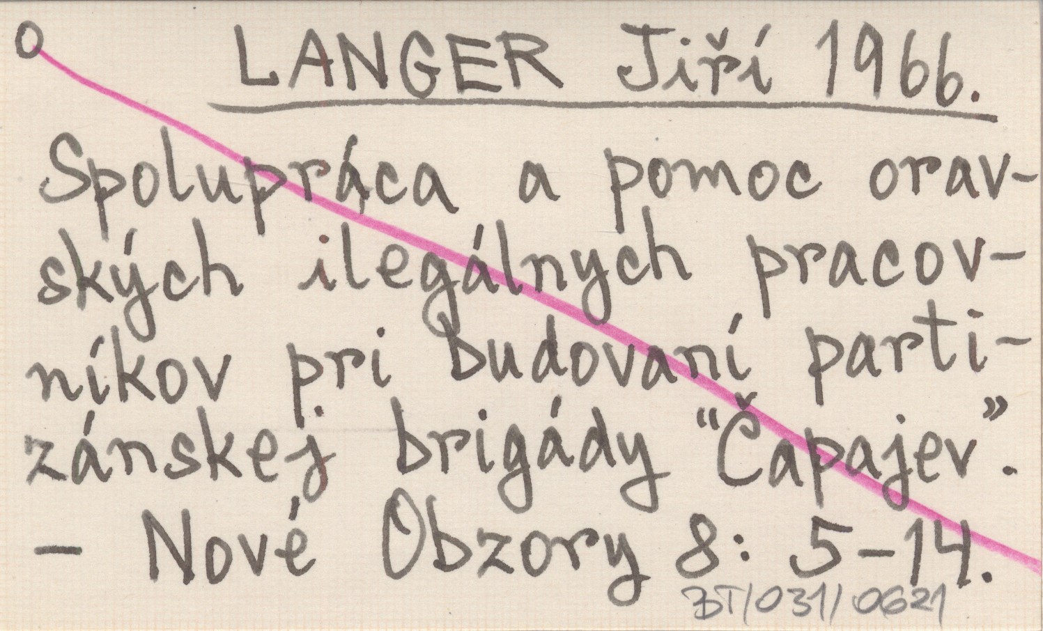 LANGER Jiří 1966 Spolupráca a pomoc oravských ilegálnych pracovníkov pri budovaní partizánskej brigády "Čapajev".