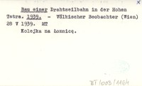 Bau einer Drahtseilbahn auf die Lomnitzer Spitze? 1934