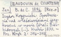 B. de C. [BAUDOUIN de COURTENAY Jan] 1876 [Rec. o:] Izydor Kopernicki: Spostrzeżenia nad właściwościami językowemi w mowie Górali Bieskidowych [...]. Kraków 1875.