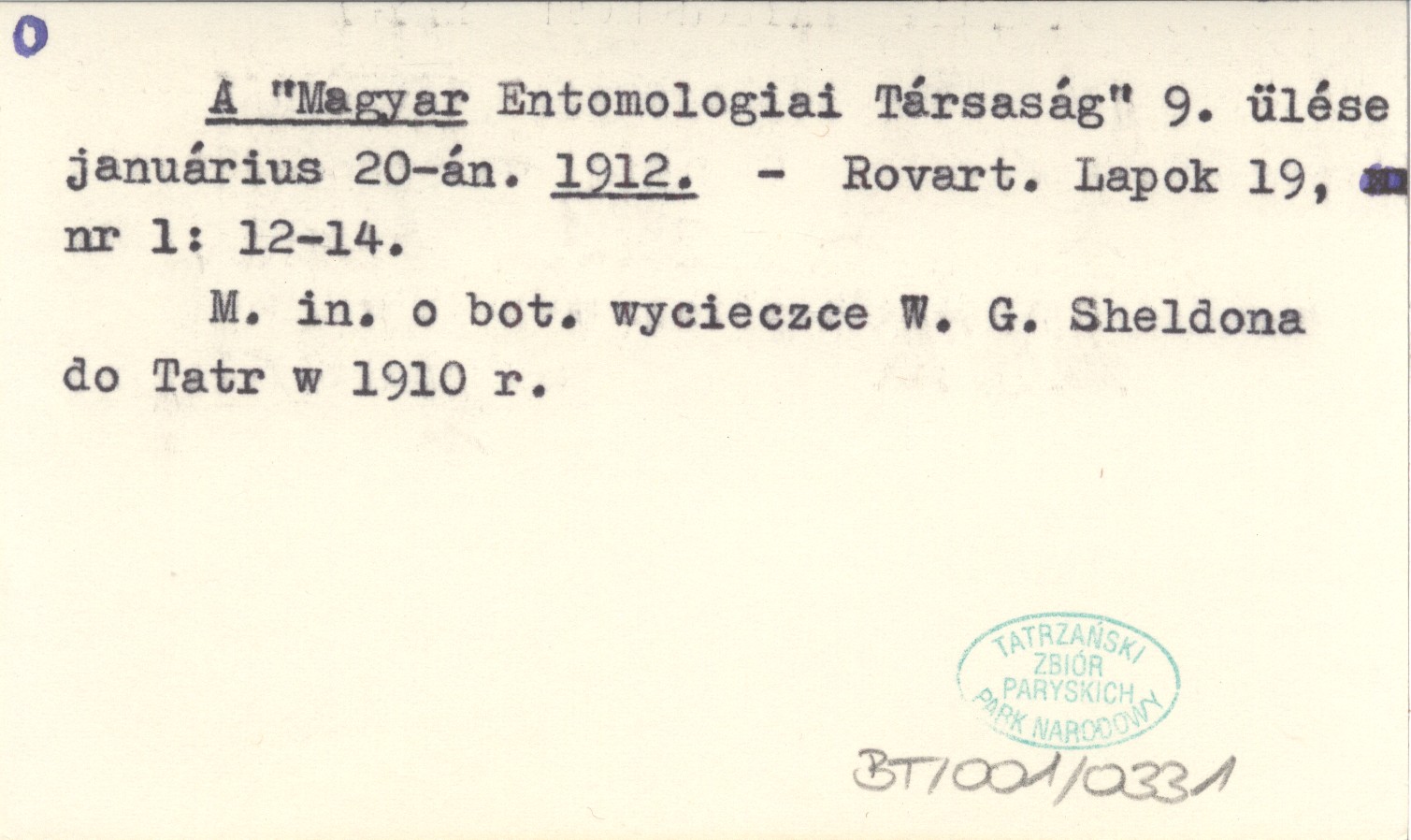 Rovart. Lapok, 19, nr 1: 12-14. M. in. o botanicznej wycieczce W. G. Sheldona do Tatr w 1910 r.