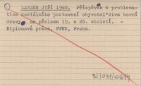 LANGER Jiří 1960 Příspěvek k problematice sociálního postavení obyvateµstva horní Oravy na přelomu 19. a 20. století.
