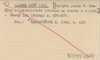 LANGER Jiří 1961 [Krytyka pracy V. Praľáka o budownictwie ludowym na Orawie z r. 1961.]