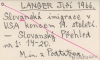LANGER Jiří 1966 Slovanská imigrace v USA koncem 19. století.