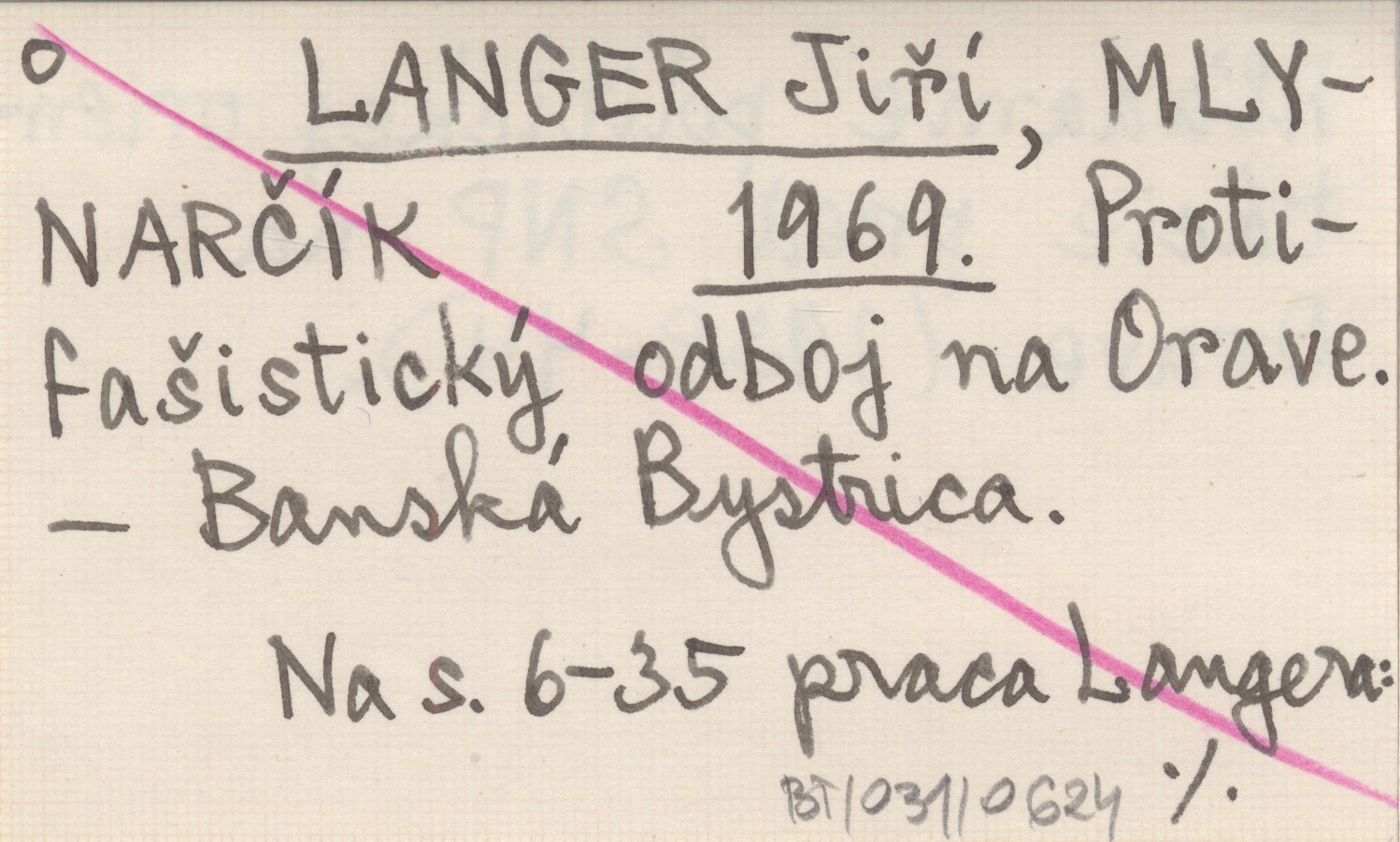 LANGER Jiří MLYNARČÍK. ; 1969 Protifašistický odboj na Orave.