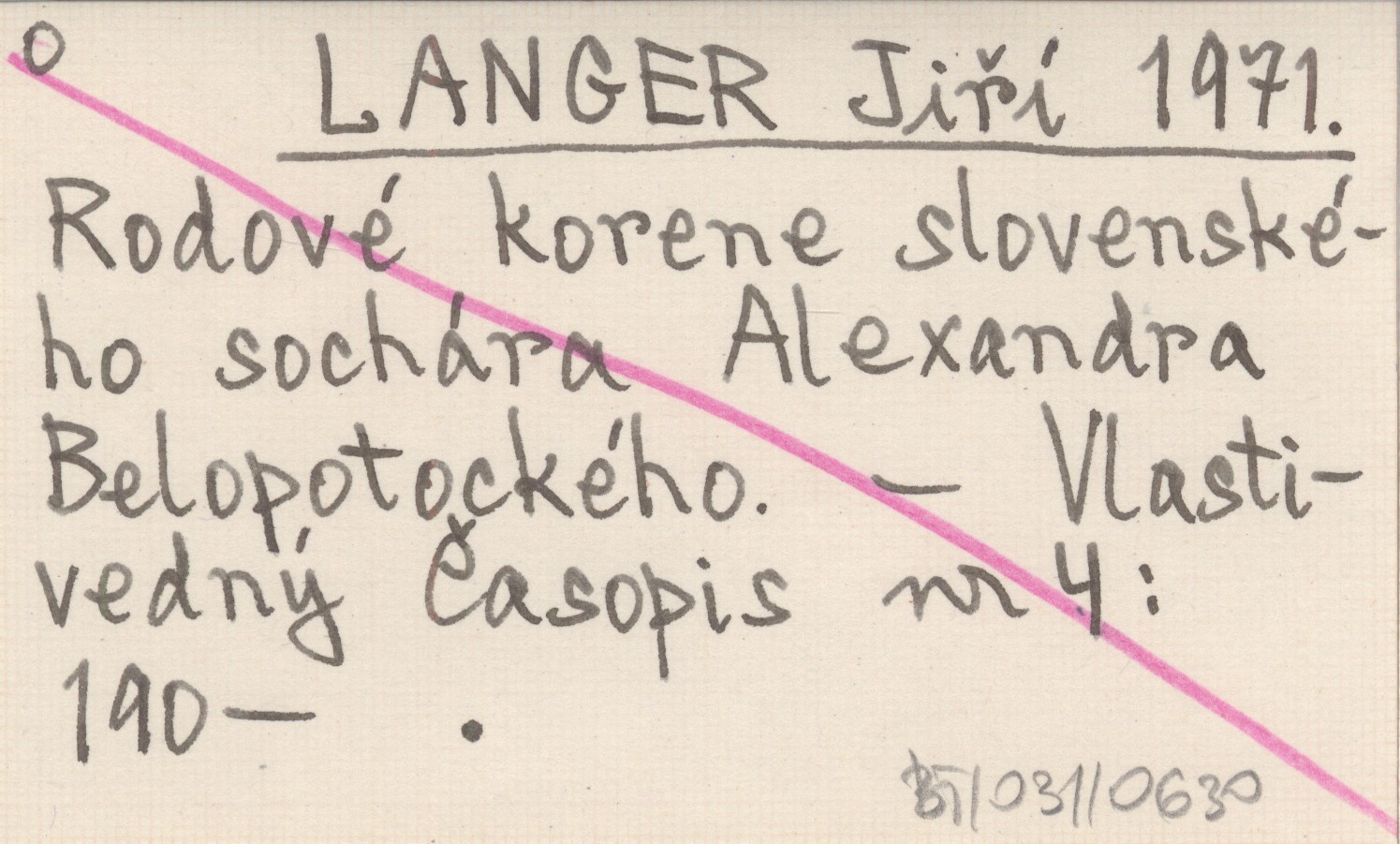 LANGER Jiří 1971 Rodové korene slovenského sochára Alexandra Belopotockého.