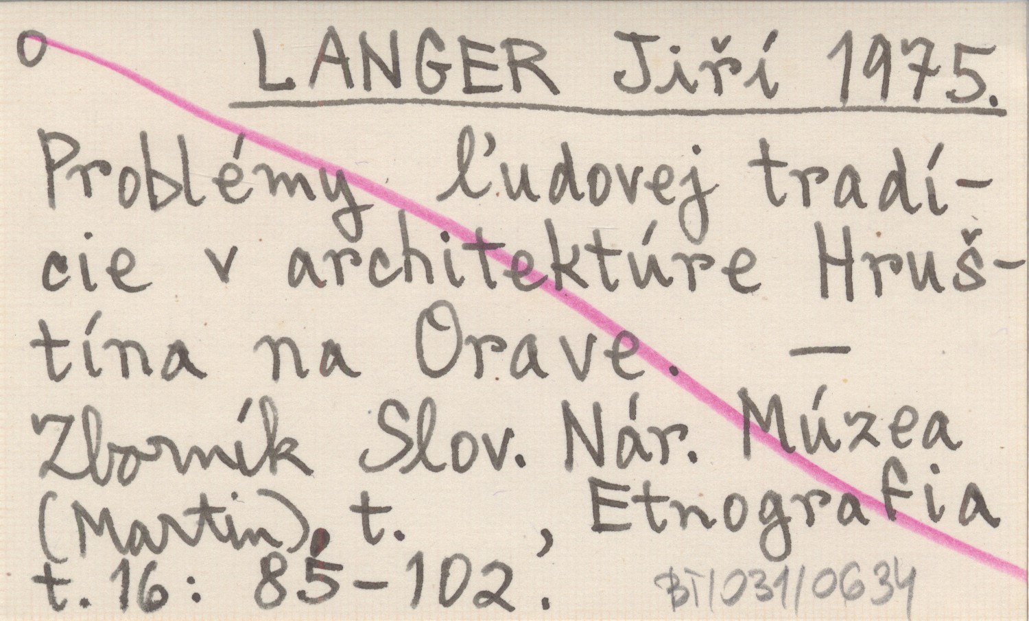 LANGER Jiří 1975 Problémy ľudovej tradície v architektúre Hruštína na Orave.