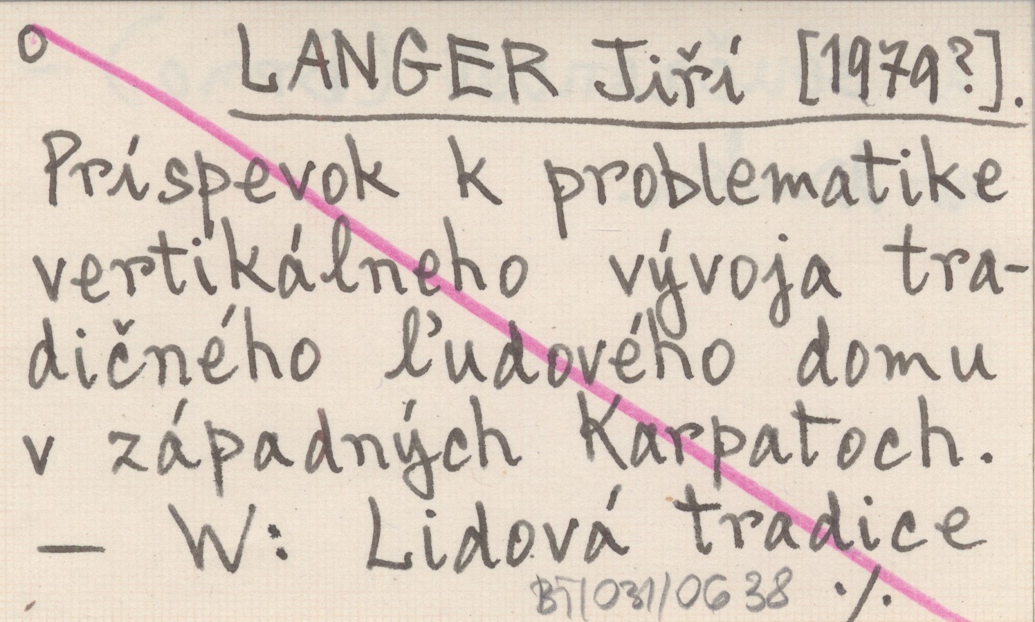 LANGER Jiří [1979?] Príspevok k problematike vertikálneho vývoja tradičného µudového domu v západných Karpatoch.
