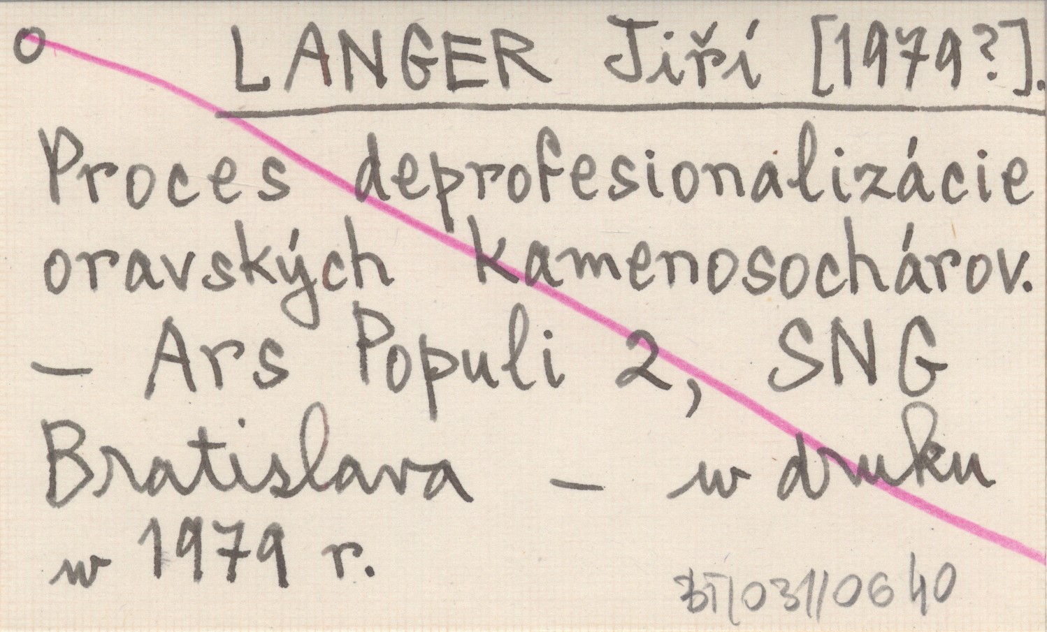 LANGER Jiří [1979?] Proces deprofesionalizácie oravských kamenosochárov.