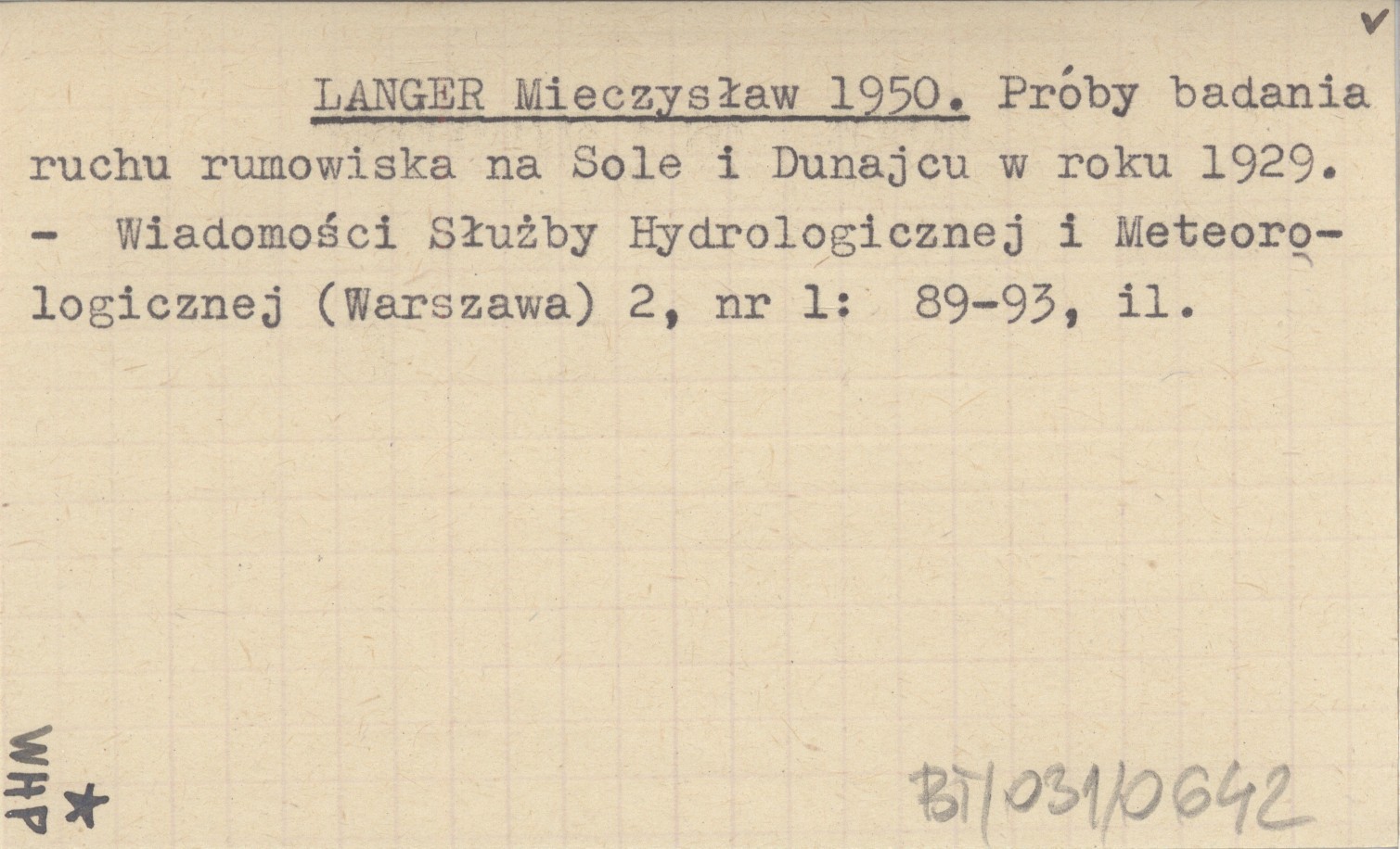 LANGER Mieczysław 1950 Próby badania ruchu rumowiska na Sole i Dunajcu w roku 1929.