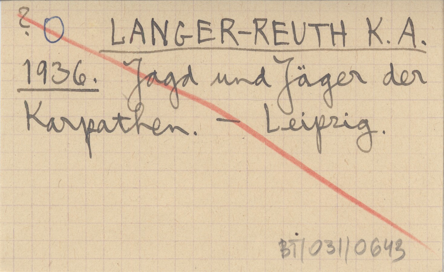 LANGER-REUTH K. A. 1936 Jagd und Jäger der Karpathen.