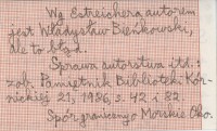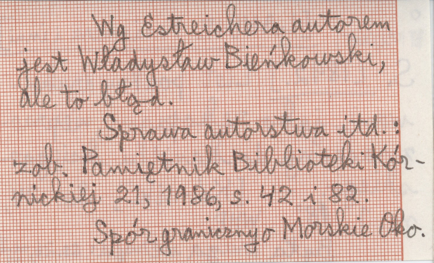 [Kórnik] , 24 s., 1 mapa, 8°. Spór graniczny o Morskie Oko. Była druga wersja: 26 s., 1 mapa. Wg Estreichera autorem jest Władysław Bieńkowski, ale to błąd. Sprawa autorstwa itd.: zob. Pamiętnik Biblioteki Kórnickiej 21, 1986, s. 42 i 82.