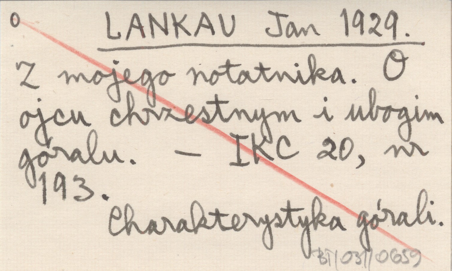 LANKAU Jan 1929 Z mojego notatnika. O ojcu chrzestnym i ubogim góralu.